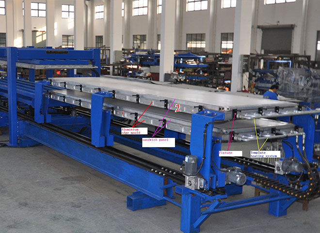 非連續PU彩鋼板生產線a.結構簡單,外型美觀,機架采H型鋼焊接底座,墻板結構,整體強度高。b.設備其它重要部件,構件均采用于國內知名企業,從面有效保證了設備的性能。c.采用全自動定長成型沖型和切斷,定長定位精確(10m長度誤差≤2mm),板形頭尾美觀···